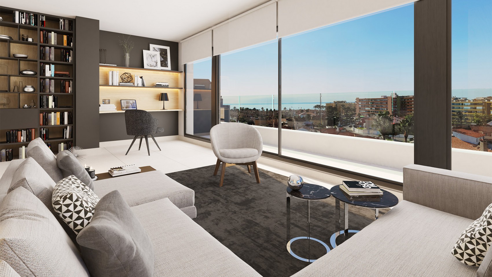 El Palacio de Ferias y Congresos de Málaga acogió a mediados de noviembre a más de 160 entidades en un espacio expositivo de 9.000 m2, donde según datos de la organización, se ofertaron en torno a 22.000 inmuebles. Entre los cuales se encontraban las promociones de Metrovacesa y de las que nuestro equipo se ha encargado de realizar las infografías en 3D, las imágenes 360º y las animaciones 3D. En un destacado stand donde pantallas de amplias dimensiones dejaban ver al detalle las características y dimensiones de las ilustraciones, durante todo el fin de semana los visitantes a la Simed pudieron ver las nuevas propuestas de la empresa y vivir experiencias inmersivas, gracias al servicio que Zeta Infografía dispuso a través de las Oculus Gear VR.