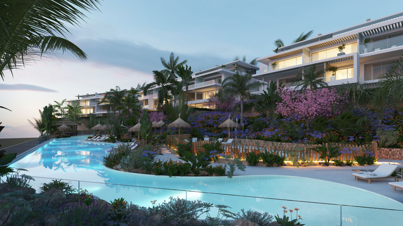 Infinity es una urbanización de lujo para vivir en un enclave de lujo con vistas al mar, con la sierra a las espaldas y rodeados de la inmensa luz característica que envuelve a diario la costa gaditana. El entorno natural se muestra perfectamente fusionado con la arquitectura planteada y el paisajismo escogido.