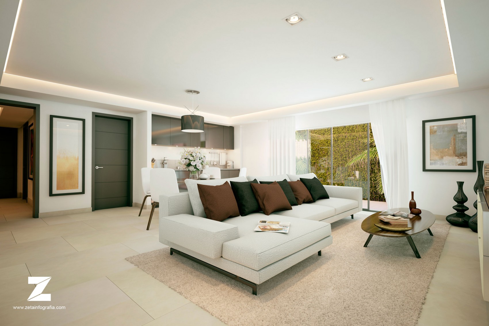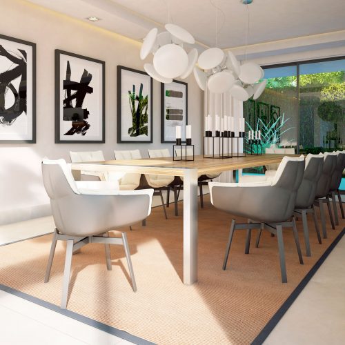 Del mismo modo, el desarrollo en 3D del interiorismo debía ir acorde con el sentido de esta villa de lujo. Decoración de alto nivel y gusto exquisito, sin caer en la ocupación innecesaria de espacios.